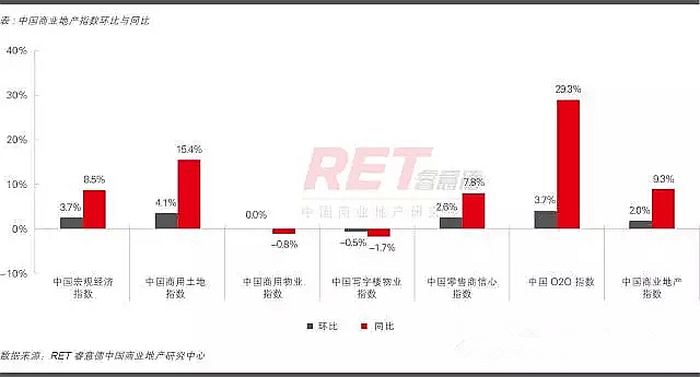 從本季度各二級指數表現來看,寫字樓投資熱度在減弱,寫字樓物業指數環比下跌,而商業投資在近一年中也回歸平穩,商用物業指數環比持平;O2O指數熱度則持續增長,在各項指標中最為突出。