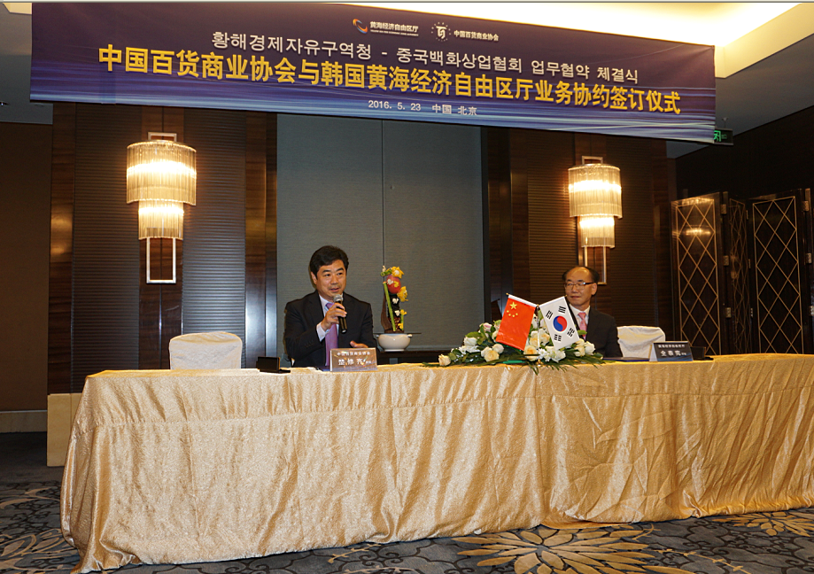 簽約儀式上,韓國黃海經(jīng)濟(jì)自由區(qū)廳長全泰憲首先致辭,全泰憲廳長介紹了黃海經(jīng)濟(jì)自由區(qū)域的區(qū)位優(yōu)勢及未來規(guī)劃,黃海經(jīng)濟(jì)自由區(qū)域地處韓國中心部位—平澤港附近,在40公里的范圍內(nèi)聚集了韓國45%的動(dòng)力產(chǎn)業(yè),將逐步發(fā)展成為韓國經(jīng)濟(jì)增長的核心動(dòng)力區(qū)。依托優(yōu)越的地理位置及周邊的產(chǎn)業(yè)支撐,黃海經(jīng)濟(jì)自由區(qū)域正在 “以家庭為單位的滯留型綜合購物•觀光園區(qū)”為主題規(guī)劃建設(shè)玄德地區(qū),那里將聚合綜合購物、美食餐飲、健康醫(yī)療、文化體驗(yàn)、韓流明星演出等多樣化的生活享受。來自不同國家、不同領(lǐng)域的人們共同創(chuàng)造歡聚空間,體驗(yàn)潮流消費(fèi)。全泰憲廳長希望借助中國百貨商業(yè)協(xié)會(huì)的引導(dǎo)力,帶動(dòng)更多中國流通企業(yè)到黃海區(qū)投資發(fā)展,共創(chuàng)共享玄德地區(qū)的繁榮未來。