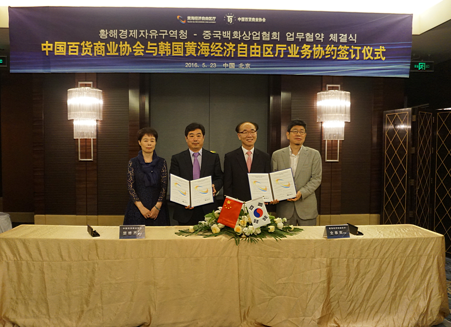 5月23日,中國百貨商業(yè)協(xié)會(huì)與韓國黃海經(jīng)濟(jì)自由區(qū)廳在北京簽訂戰(zhàn)略合作協(xié)議,雙方將共同推動(dòng)中國流通企業(yè)到韓國黃海經(jīng)濟(jì)自由區(qū)廳投資發(fā)展。中國百貨商業(yè)協(xié)會(huì)會(huì)長楚修齊、韓國黃海經(jīng)濟(jì)自由區(qū)廳長全泰憲分別簽署協(xié)議。