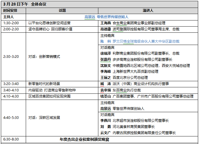 第17屆中國百貨零售業年會暨商業創新峰會日程安排