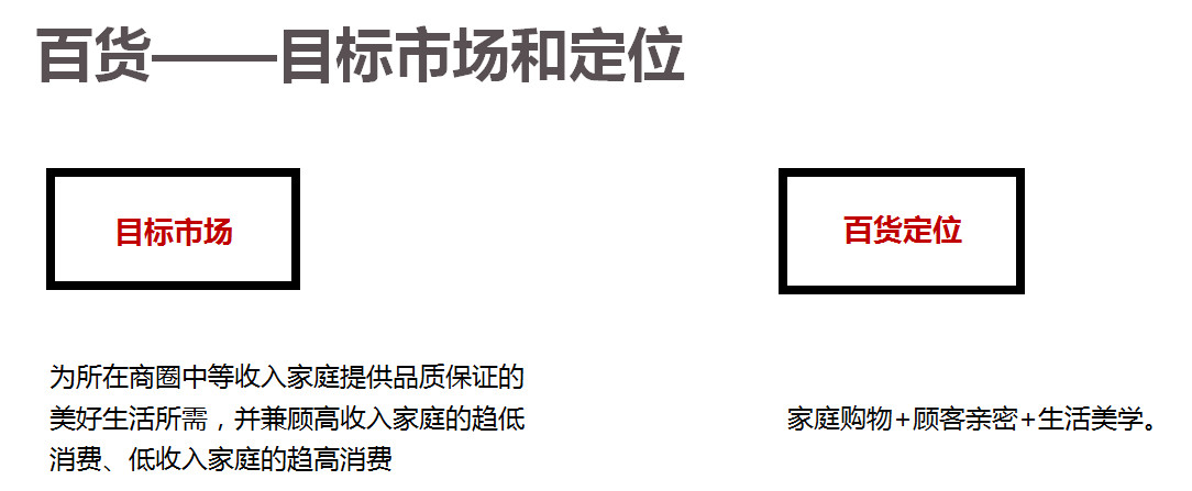 首先我們做了一個比較大的一件事情,我們整個天虹是圍繞家庭購物、顧客親密和生活美學(xué),這是我們天虹百貨的核心定位,基于這個大的框架下的定位,我們基于不同的市場,我們針對不同的商圈、消費(fèi)者,我們在深圳有30多家門店,其實我們也會發(fā)現(xiàn)在不同的區(qū)域市場上,顧客的消費(fèi)也會有一定程度的差異性,特別是我們現(xiàn)在天虹也有一線城市,也有三四線城市,我們也發(fā)現(xiàn)不同的市場雖然叫天虹百貨,但是區(qū)域市場定位差異、消費(fèi)能力、消費(fèi)特征還是有很大的差異,所以我們在整個定位上,有一套比較完善的定位技術(shù)。當(dāng)然剛才王總講關(guān)于大數(shù)據(jù)的一些運(yùn)用,其實未來對我們天虹在定位技術(shù)上還有一個更好的啟發(fā)。