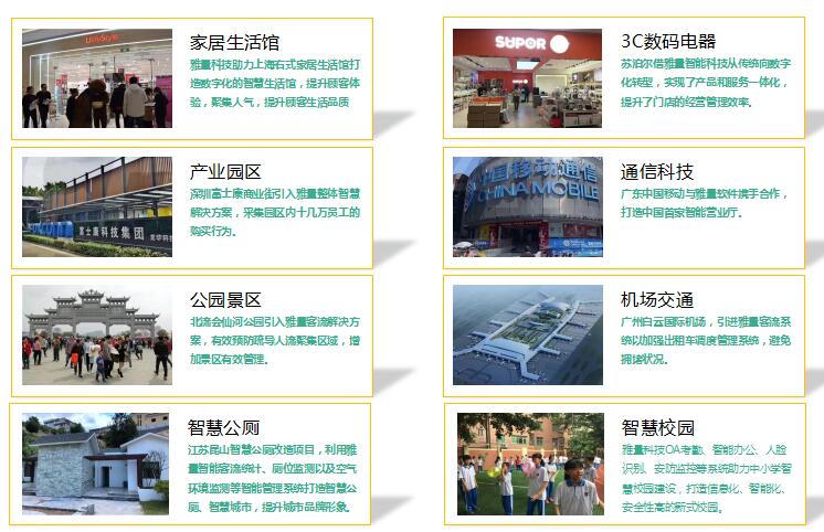 3. 雅量云識客——雅量店眼自有算法 3-5 秒高速智能識別訪客,精確分析出人員的性別、年齡等屬性,并結合 URM、DSP 系統實現精準營銷,提高復購率、到店率、購買力;