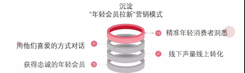 這是一個視頻,大家可以看一下,蠻有意思的。現場很火爆,有很多的年輕消費者為自己的粉絲打call做應援,現在很流行,做了很多表白,有各種各樣形式的表白,現在也有很多求婚成功的,可能在商場這個地方求婚,好像不太浪漫,但實際上拿到這個效果成的還蠻多的。我們原來發現年輕消費者對于求婚這件事想法也并不是很多,越來越多的直男和宅男,想不出來方式,我們延伸出另外一個好玩的事,把求婚作為一項長期服務,對于我消費者會員的一個服務,我幫你想象一個場景,借助這個做一個這樣的事情。同時那個場很有意思,也很有特點,我們希望借助年輕消費者和朋友約出來互動,大家簡簡單單見個面,吃個飯聊個天,拍個照發個朋友圈這樣的行為,讓我的平臺更年輕化,以達到把我的潛客吸引過來,引導到店里消費。引導過去了最終的結果是把它沉淀下來了。