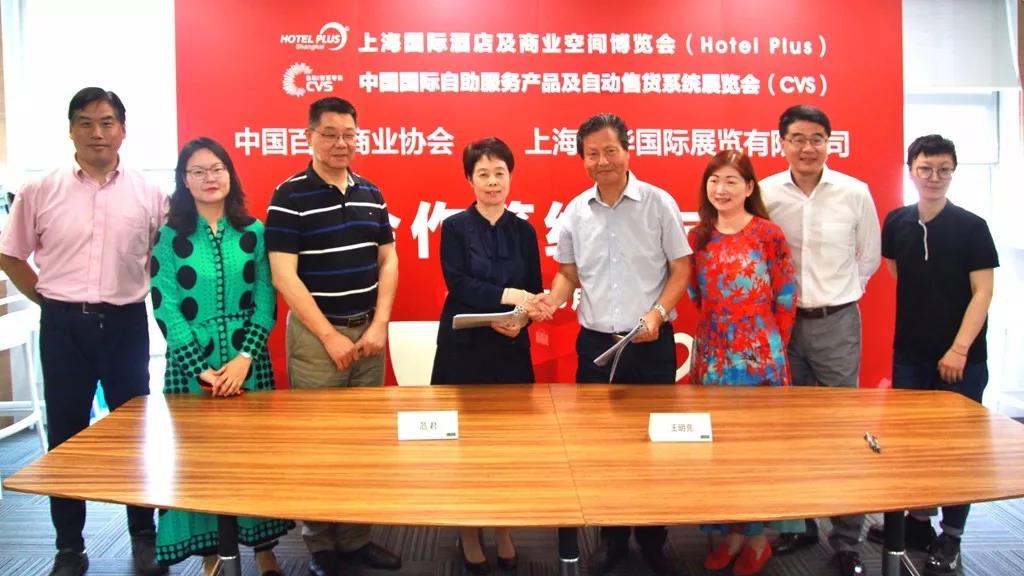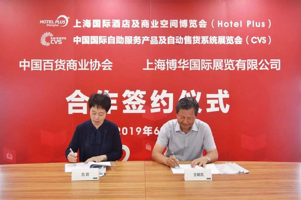 2019年6月11日,“中國百貨商業協會”與“上海博華國際展覽有限公司”簽約合作儀式在上海博華國際展覽有限公司(簡稱:上海博華)隆重舉行。此次簽約,標志著雙方建立了穩固的戰略合作伙伴關系,為上海博華旗下的上海國際酒店及商業空間博覽會(Hotel Plus)及中國國際自助服務產品及自動售貨系統展覽會(CVS)的持續、健康、快速發展奠定了良好的基礎。