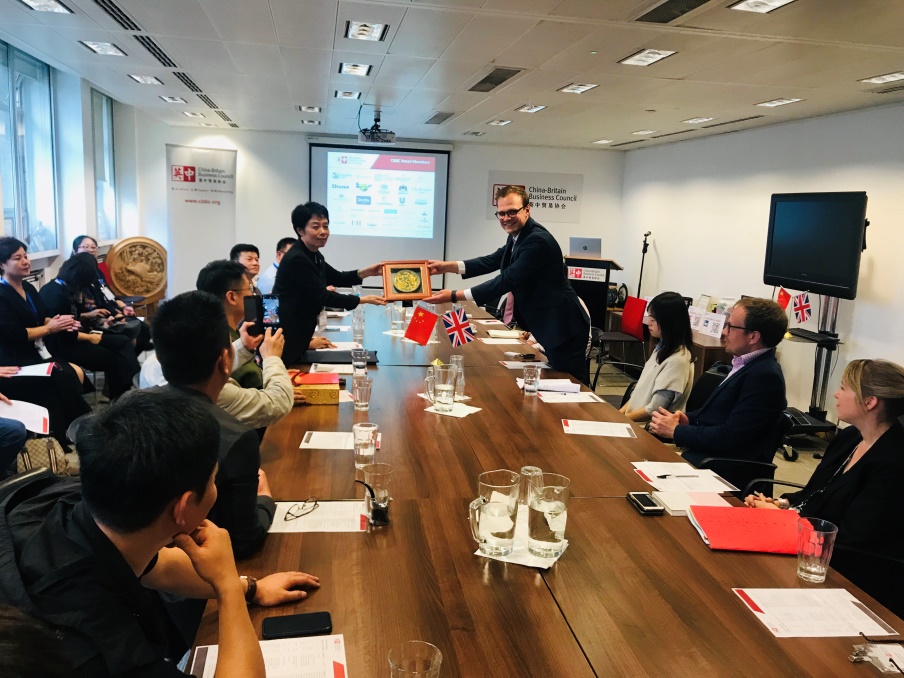 交流考察的首場活動是訪問英中貿易協會,英中貿易協會是英國政府英國國際貿易部的官方合作伙伴,會員遍及商業貿易各個領域。英中貿易協會英國零售商和電子商務領域主管包震軒先生首先非常歡迎中國零售企業家的到來,并介紹了英國零售業發展狀況及趨勢。會員企業DUNE、L.K.Bennet等品牌及英中財富投資公司的代表一同參加了交流。范君會長對中國百貨商業協會進行了介紹,說明此行目的主要是考察學習底蘊深厚的英國零售業,特別是皇家式的服務體驗,范會長還逐一介紹了各位中方代表及其企業情況,隨后雙方企業家進行了深入的互動溝通,大家碰撞出諸多未來合作可能。