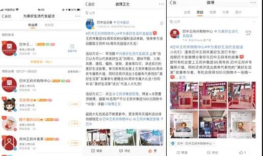 在宣傳上,聯(lián)合本地網(wǎng)紅大V一起積極參與集團在微博、抖音發(fā)起的話題打榜;抖音話題#美好都in王府井總播放量310.3萬,其中巴中王府井的一條抖音貢獻198.7萬播放量,其點贊量高達(dá)5.3萬;與此同時,在2F打造了美好生活打卡地,官方微博連同本地微博大V一起持續(xù)為話題打榜,自超話創(chuàng)建以來連續(xù)6周榮登粉絲榜排名第一,并評選為話題小主持人,下一步將優(yōu)化項目的美好生活打卡地,邀請更多的顧客積極參與微博超話打榜,線上線下多渠道、多形式為集團65周年慶宣傳造勢。