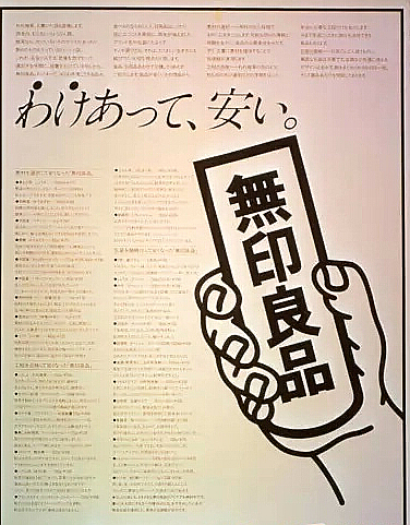 于是乎,為了讓這些大廠商參與到自己商品的制造上來,無印良品明確了自己的商品概念。在早期的無印良品海報上,經常能看到這樣的字眼“わけあって、安い(便宜的有理由)”。理由就是①原材料的選擇②工序的改善③包裝的簡化。這樣的商品理念和日本的匠人精神非常符合,促使著很多廠商也愿意參與到無印良品商品的生產上面來。