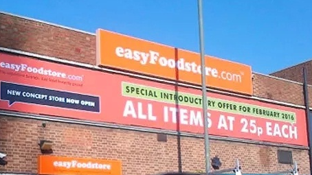 這家店鋪的主要商品就是咖啡、餅干、面包、粥包、罐裝蔬菜、土豆和果汁等等。從廣告來看,更是劍指阿爾迪(Aldi)超市和Lidl超市——這可是英國,乃至全球范圍內(nèi)最知名的折扣店了,不少商品的價(jià)格甚至低于“天天低價(jià)的”沃爾瑪。因此,easyFoodstore的客戶群也很明顯,就是英國最最最窮的那一批顧客。