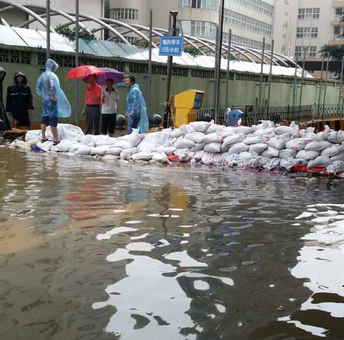 武漢城區多處漬水嚴重,交通嚴重阻滯。雨水倒灌導致中南路地鐵站進水關閉,中商廣場前中南路段已經成為一片“大海”,門前廣場有不少市民躲雨“看海”。中商廣場停車場前已是一片汪洋,中商人不停的用堆沙包抵御漬水。暴雨前一天,中商廣場防汛指揮部已經部署了各方人力對商場內外設施進行巡查,及時發現隱患并積極應對,領導在現場積極巡查,查找可能漬水點,積極處理應對。
