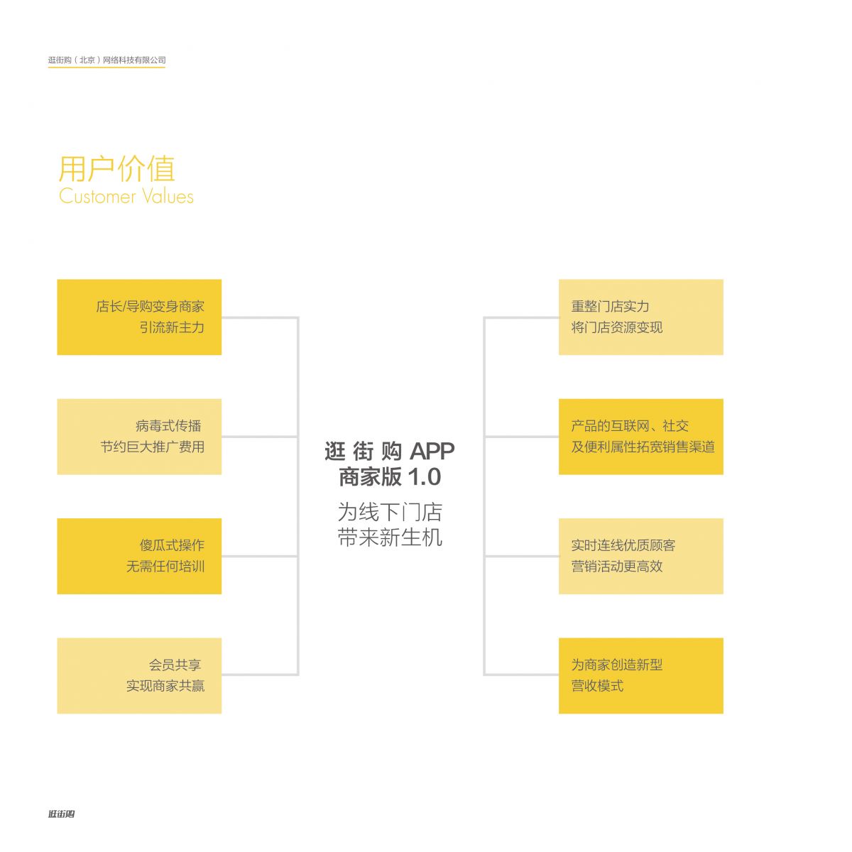 逛街購(北京)網(wǎng)絡科技有限公司,總部位于北京。自2004年起,公司前身即致力于為中國傳統(tǒng)線下實體商家提供基于PC端的互聯(lián)網(wǎng)營銷解決方案。在長期見證及研究線下實體商業(yè)發(fā)展史的過程中,逛街購發(fā)現(xiàn)無論互聯(lián)網(wǎng)及移動科技如何發(fā)展,始終都要圍繞線下實體商家可能會面臨的客流稀缺、廣告?zhèn)鞑ヮA算及渠道緊張、傳播時效性及連貫性差以及無法有效與顧客建立直接關(guān)聯(lián)等核心問題為其提供以先進科技為基點的平臺化解決方案,而不是簡單的以資本貼補的方式幫助線下商家短暫的拉動消費者的消費熱情。歷經(jīng)十余年對線下商業(yè)用戶需求的深度解析以及對互聯(lián)網(wǎng)技術(shù)發(fā)展趨勢的準確前瞻,逛街購(北京)網(wǎng)絡科技有限公司聚焦全新的移動端解決方案領域,通過開發(fā)和運營移動互聯(lián)網(wǎng)絡產(chǎn)品,以城市商圈為地標單元,為線下實體商家打造了一款全新的端到端平臺化電子商務解決方案——逛街購社交型傳統(tǒng)線下商業(yè)即時互聯(lián)網(wǎng)營銷平臺。
