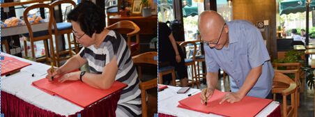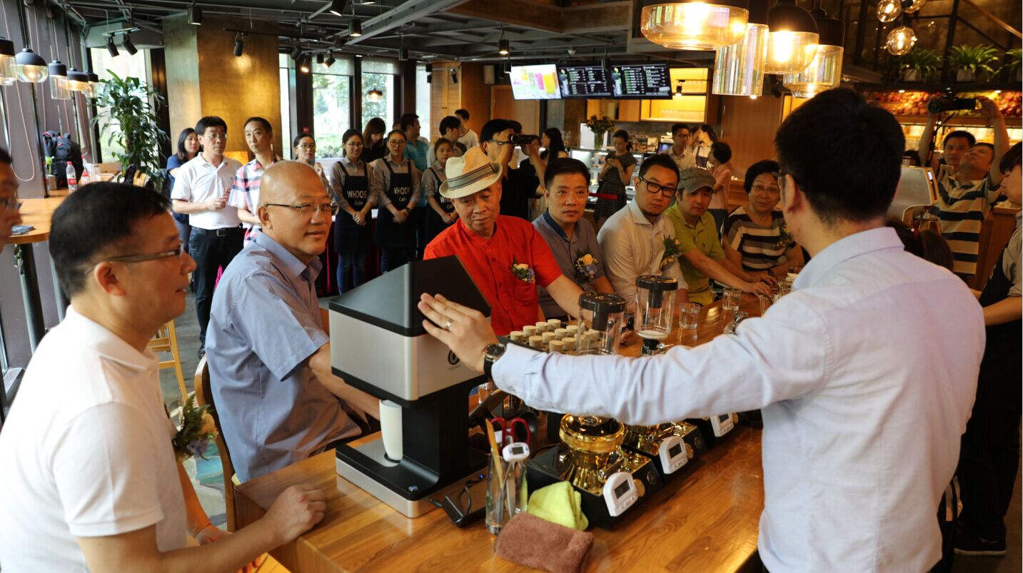 上午9時許,嘉賓們先后到場并題詞留念,隨后在工作人員的陪同下參觀Whoops Café中潭路店,同時聽取品牌運營負責人對產品和設備的詳細介紹,期間他們還饒有興致地嘗試了3D拉花設備。