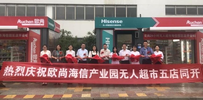 7月23日,歐尚24小時無人超市海信黃島產業園五店同時開業,此次歐尚聯手海信,將無人超市帶入海信黃島產業園內,希望為更多的海信人提供智慧便捷的生活體驗,可滿足園區內約1.5萬名員工的日常購物需求。