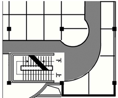 在正方形樓面積中,多采用環形設計。在交錯道路的平面中,有間距大的多采用弧形或環形設計。