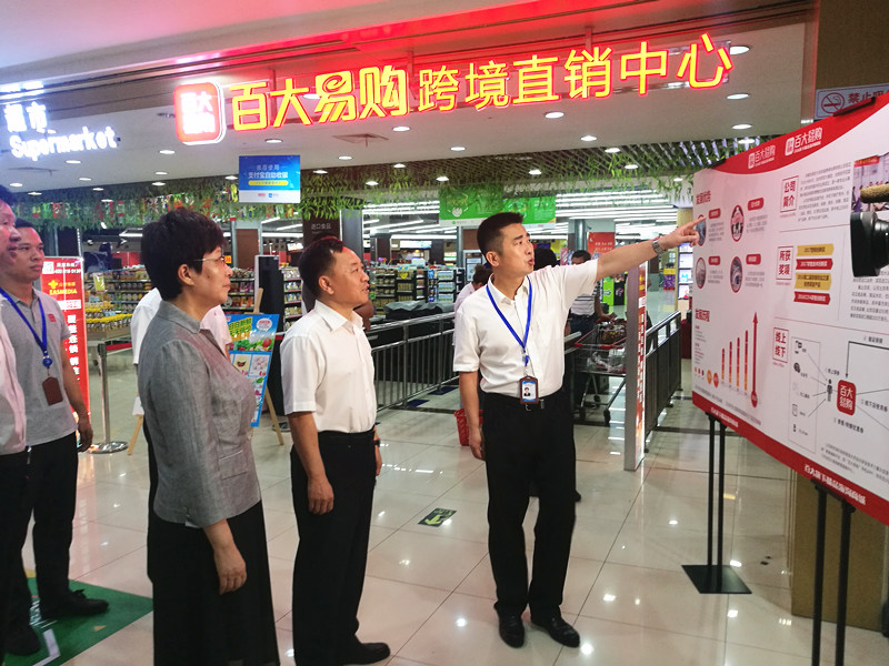 調研組一行來到合肥百大集團旗下電商品牌百大易購跨境商品直銷中心(港匯店),認真了解直銷中心進口商品經營銷售情況以及保稅進口業務、一般貿易業務開展情況。劉浩董事長介紹了公司基本情況,重點展示了線上線下保稅和直郵商品的購物流程,以及在合肥本地清關的一般貿易商品進境情況。
