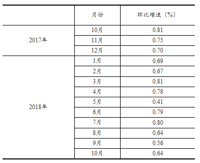 根據季節調整模型自動修正的結果,對2017年10月份以來的社會消費品零售總額環比增速進行修訂。修訂結果及2018年10月份環比數據如下: