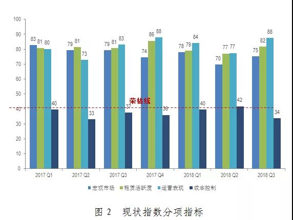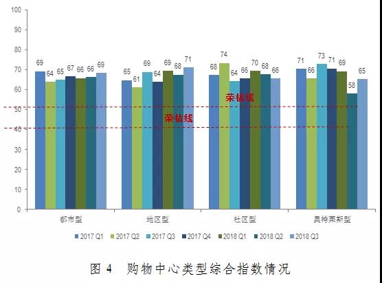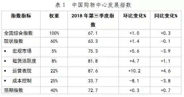 2018年第三季度中國購物中心綜合指數(shù)錄得67.1,環(huán)比上升1.0,同比上升0.3,且高出榮枯線17.1。整體市場保持健康向上的態(tài)勢(shì)。
