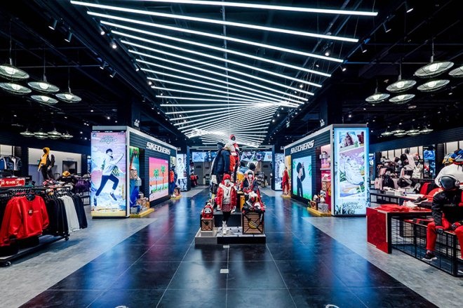 據了解,斯凱奇沈陽超級大店是目前國內面積最大的斯凱奇品牌店鋪,整體面積達到 2982 平方米。整個店鋪被劃出多個專屬產品區域,包括D’Lites、Lifestyle、Performance、Kids等都有獨立的展示。同時時尚大氣的設計和現代感十足的產品陳列方式令視覺效果更為直觀且多樣性,充分滿足了消費者一站式的購物體驗。