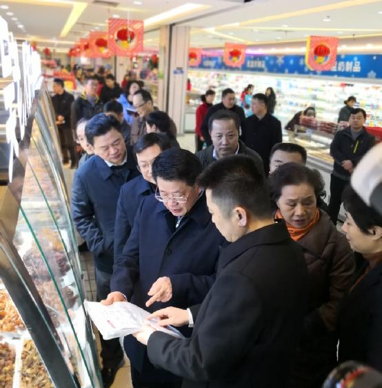 春節(jié)前,由安徽省副省長楊光榮、省政府副秘書長章石生、省市場監(jiān)管局局長韓永生、合肥市副市長朱策等省市相關(guān)部門領(lǐng)導(dǎo)組成的檢查組一行蒞臨百大集團(tuán)合家福馬鞍山路購物廣場檢查節(jié)日市場監(jiān)管工作。百大集團(tuán)黨委書記、董事長劉浩,副總經(jīng)理余綯等陪同視察。