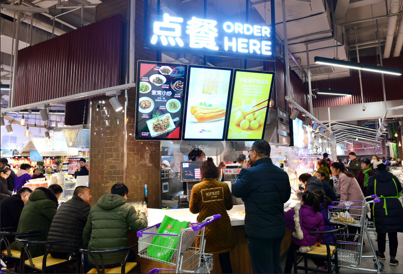 包裝配菜售賣這種形式不僅限于低脂餐,小炒快餐區亦是如此。這是步步高主推的“大師餐”系列,聘請當地有名的湘菜大師調配,并根據當地商圈消費者的口味進行改造,消費者既可在店內免費加工,也可帶走自做。值得一提的是,店內所有食材都能在“鮮食演義”區域進行加工,加工費根據消費者采購的商品進行測算。