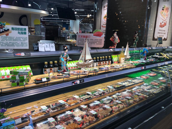 砂之船店位于湖南長沙市望城區,3598平方米的實際經營面積中陳列著近2萬支單品。出于對現代年輕人在超市消費習慣的考量,店內主要以新鮮性、高頻性的生鮮、食品為主。生鮮面積占比高達55%,日銷售額達12萬左右。
