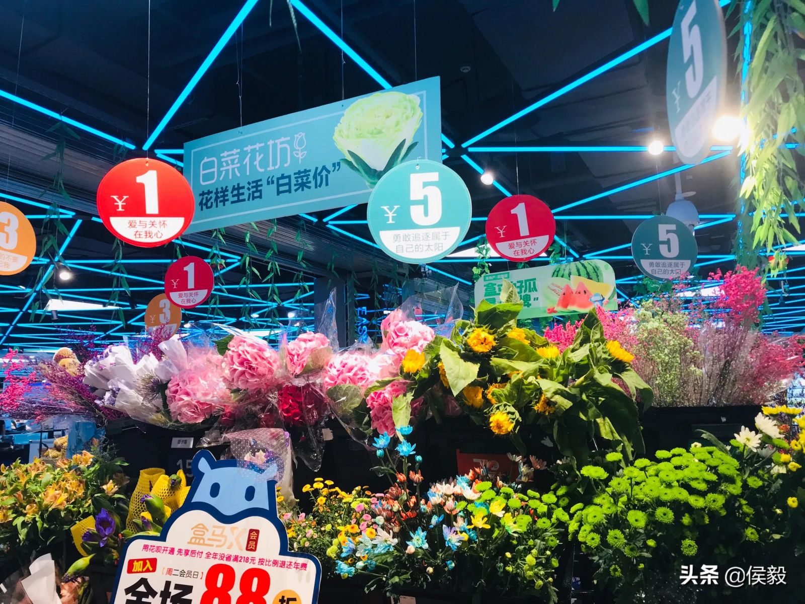 7月2日,盒馬總裁侯毅在今日頭條上稱,盒馬將開展鮮花銷售業務,將鮮花服務和銷售分開,從而讓鮮花賣出白菜價,讓鮮花消費變成高頻次的日常生活消費。在盒馬鮮生上海灣店,盒馬鮮花業務已名為“白菜花坊”。