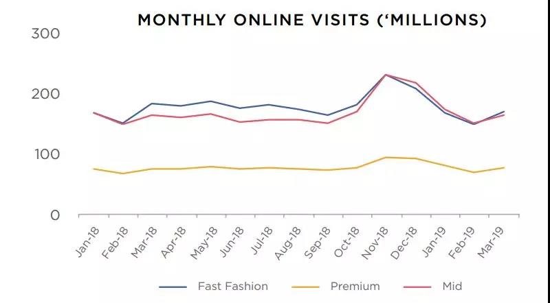 快時(shí)尚:該領(lǐng)域大多數(shù)玩家的流量下降導(dǎo)致了2019年第一季度的訪問量呈負(fù)增長.