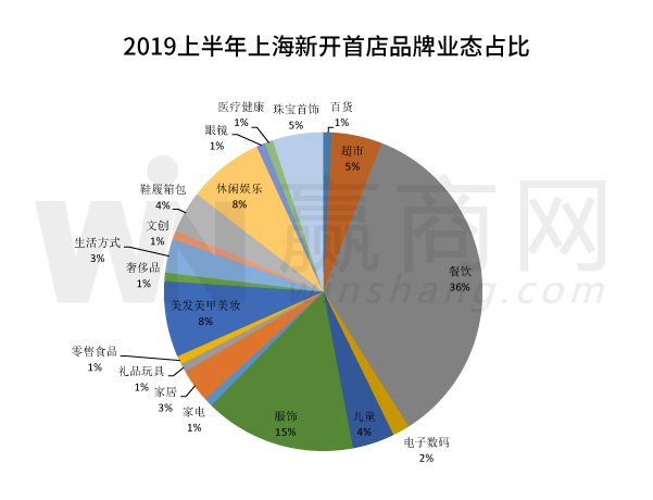 贏商網(wǎng)統(tǒng)計(jì)的《2019上半年上海首店品牌業(yè)態(tài)占比》顯示,餐飲業(yè)態(tài)位居首位,數(shù)量達(dá)42個(gè),占比約36%,其次為服飾業(yè)態(tài),數(shù)量為18個(gè),占比約15%。對(duì)此2018年的上海首店品牌業(yè)態(tài)占比來看,餐飲業(yè)態(tài)的數(shù)量雖然上升,但占比有所下降,服飾品牌則在數(shù)量和占比上均呈現(xiàn)上升趨勢(shì)。