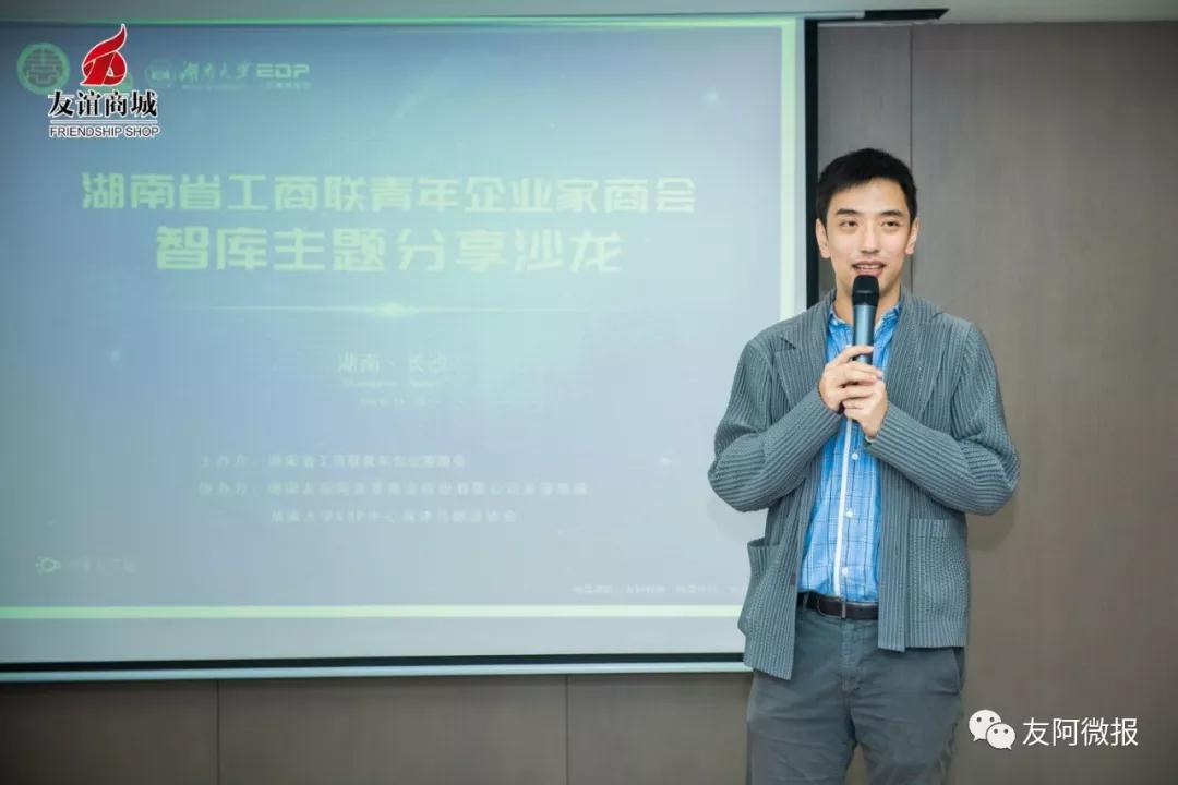 11月15日下午,友誼商城聯合湖南省青商會、湖大EDP中心演講協會舉辦的智庫主題分享會員沙龍活動,在友阿百利大廈七樓友誼商城辦公區圓滿舉行。公司董事、副總裁、百貨事業部總經理、友誼商城總經理、省青商會會長胡碩和省青商會的企業家、湖南大學EDP中心演講與朗讀協會、友阿會員等40多名嘉賓共聚一堂,就時下最熱門的關注話題區塊鏈、供應鏈以及資本市場IPO進行交流分享。